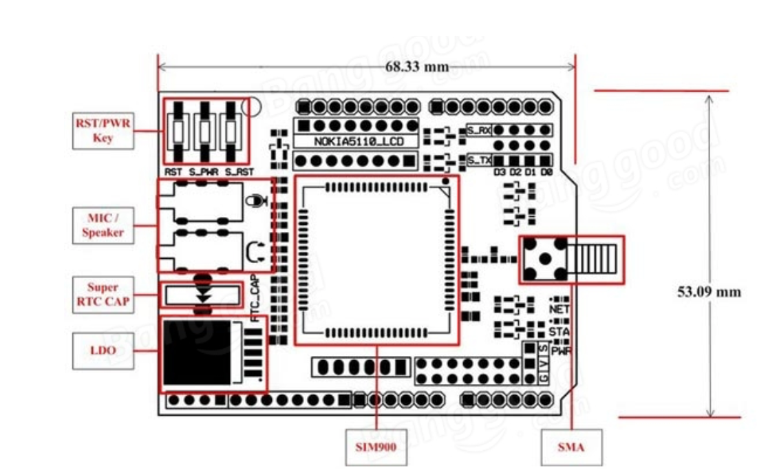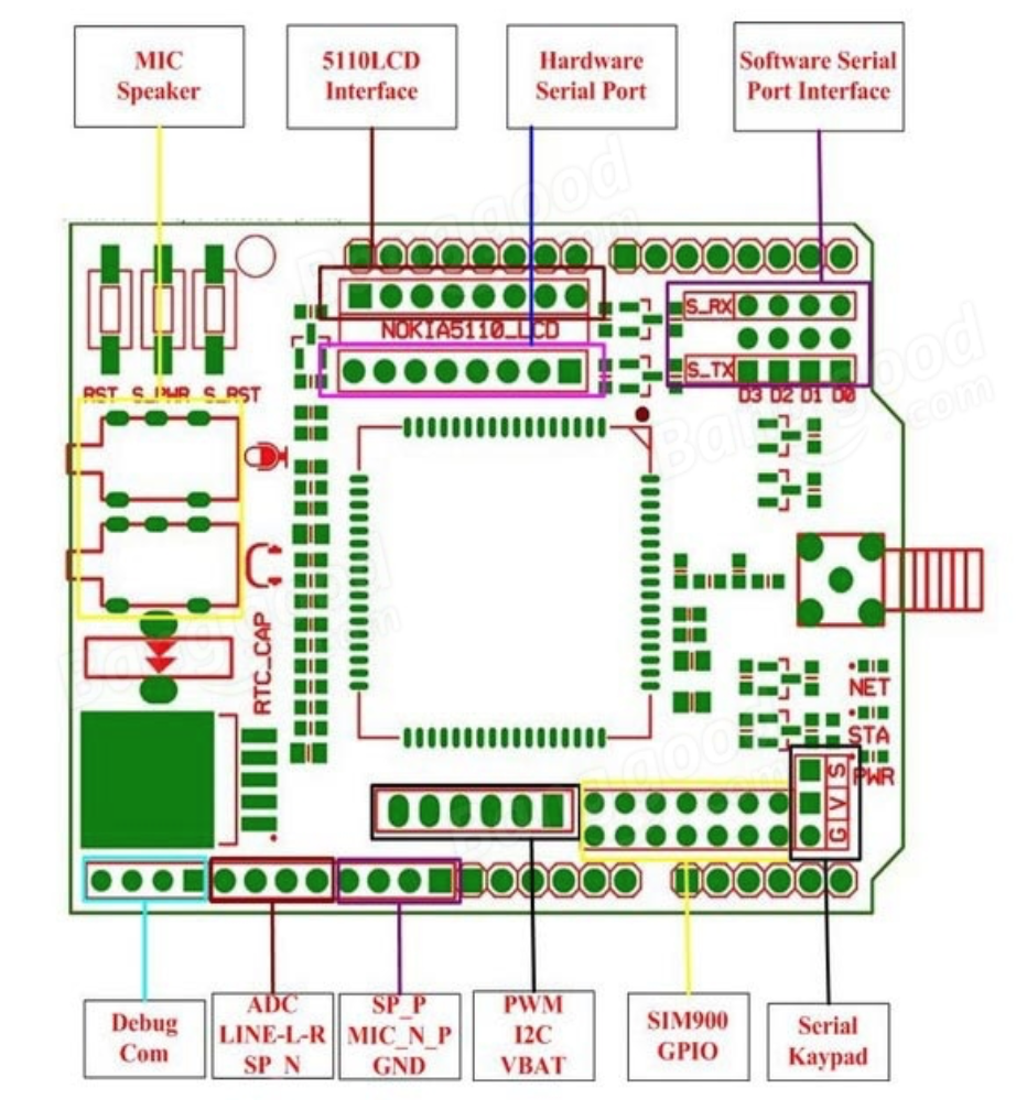 SIM900, all the IC set aside not only the UART, DEBUG mouth, all GPIO port and KEY PANEL interface